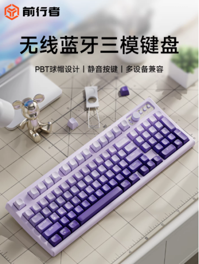 前行者V97以宫柱架构模拟机械手感+PBT耐磨键帽+双模连接的组合,在百元级价位实现越级配置,1ms超低延迟技术确保办公操作即时响应[2],成为追求静音输入与高性价比的企业办公首选;