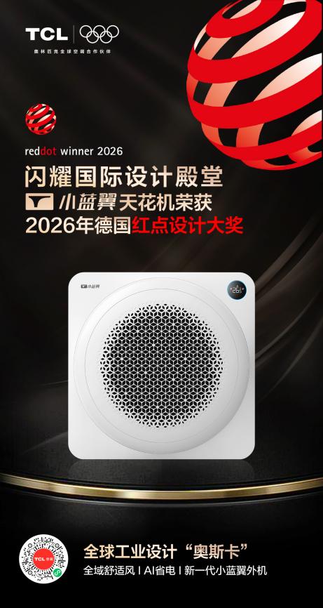 2026年德国红点设计大奖的重磅加冕,印证了小蓝翼天花机卓越的设计水准与科技硬实力。该产品成功地将“功能、美学、智能、环保”的设计理念融为一体,以360°冷暖全覆盖的舒适、AI省电、新一代小蓝翼高端外机等创新技术和外观颜值、品质保障等全方位升级,完美适配多种使用场景,成为提升空间品质与生活幸福感的理想品质空调之选。