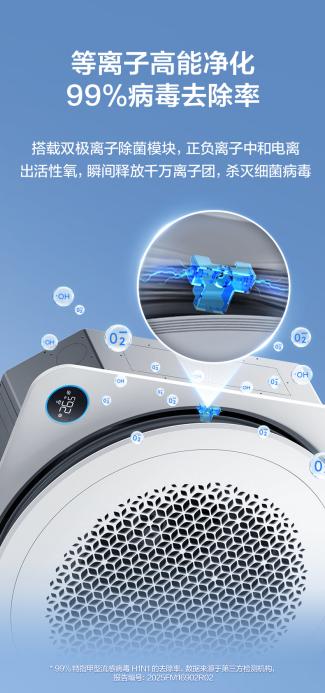 不同于传统天花机四面送风,小蓝翼天花机采用创新圆形导风环设计,实现360°冷暖全覆盖,这一创新通过内外双环升降调节机制动态优化气流通道,实现更精准、个性化的制冷与制热体验。制冷时,双环平流层柔风制冷,形成康达效应,实现淋浴式制冷,舒适不着凉;制热时,单环直瀑式暖风制热,形成文丘里效应,实现热风垂直落地,暖意从脚起,全身都舒适。并且,小蓝翼天花机还拥有等离子高能除菌功能,有效解决细菌滋生,实现99%病毒去除率,为用户打造智慧健康的全域舒适风。