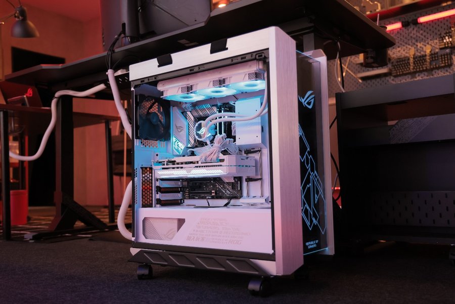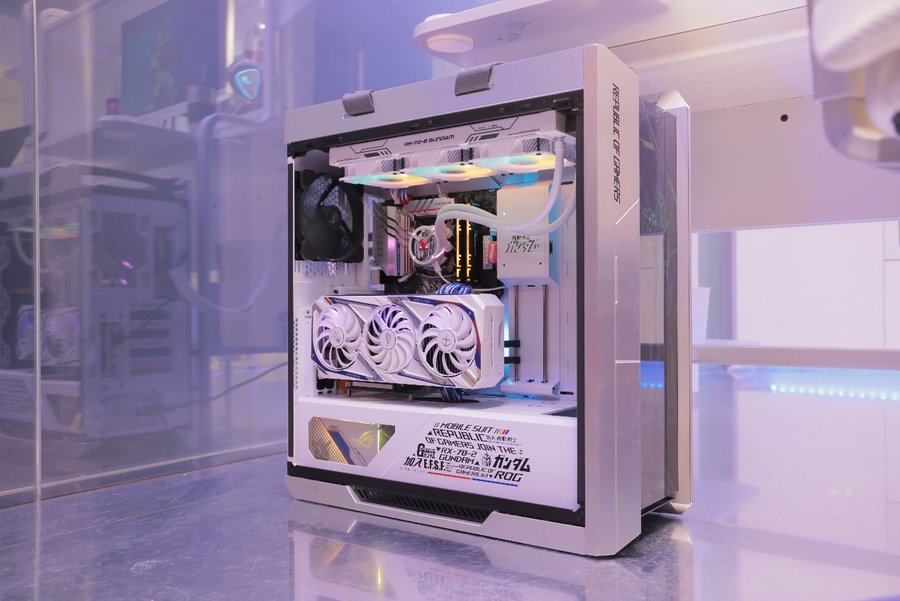 其中最引人注目的是配色明亮的ROG STRIX GeForce RTX™ 3080 WHITE显卡,纯白优雅的配色设计,助力玩家打造白色主题的电竞硬装。这款显卡的性能超群,可为游戏玩家和创作者带来令人惊叹的视觉效果、惊人的高帧率和AI加速功能,4K游戏更是手到擒来!同时, ROG STRIX HELIOS太阳神白色版机箱也凭借白色的配色吸引了不少玩家们的目光,搭配ROG STRIX LC小白龙RGB一体式水冷散热器,和ROG STRIX 雪鹰850W金牌全模组电源,带来了白色全家桶的高颜值组合,深受玩家们的喜爱!